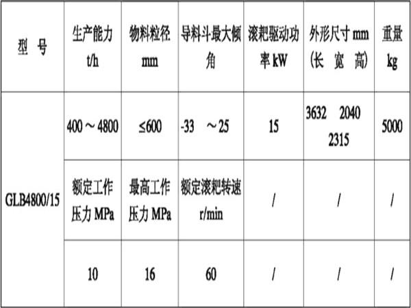 GLB4800-15型耙式(變傾角)給料機性能參數(shù):