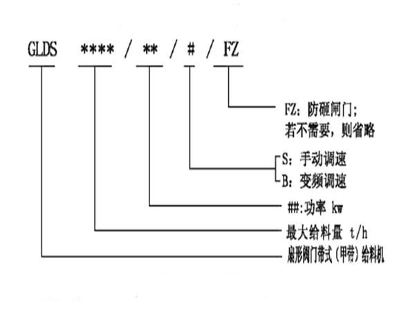 扇形閥門帶式(甲帶)給料機(jī)型號(hào)說(shuō)明: